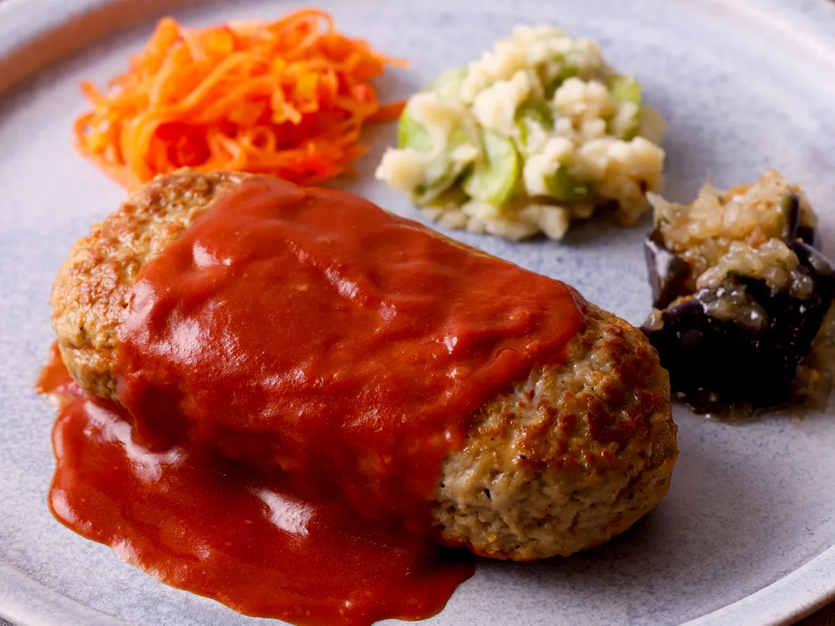 肉汁をギュッと閉じ込めたハンバーグに、ピリッと辛みの効いた特製チリソースが絡んで、美味しさと満足感アップ!