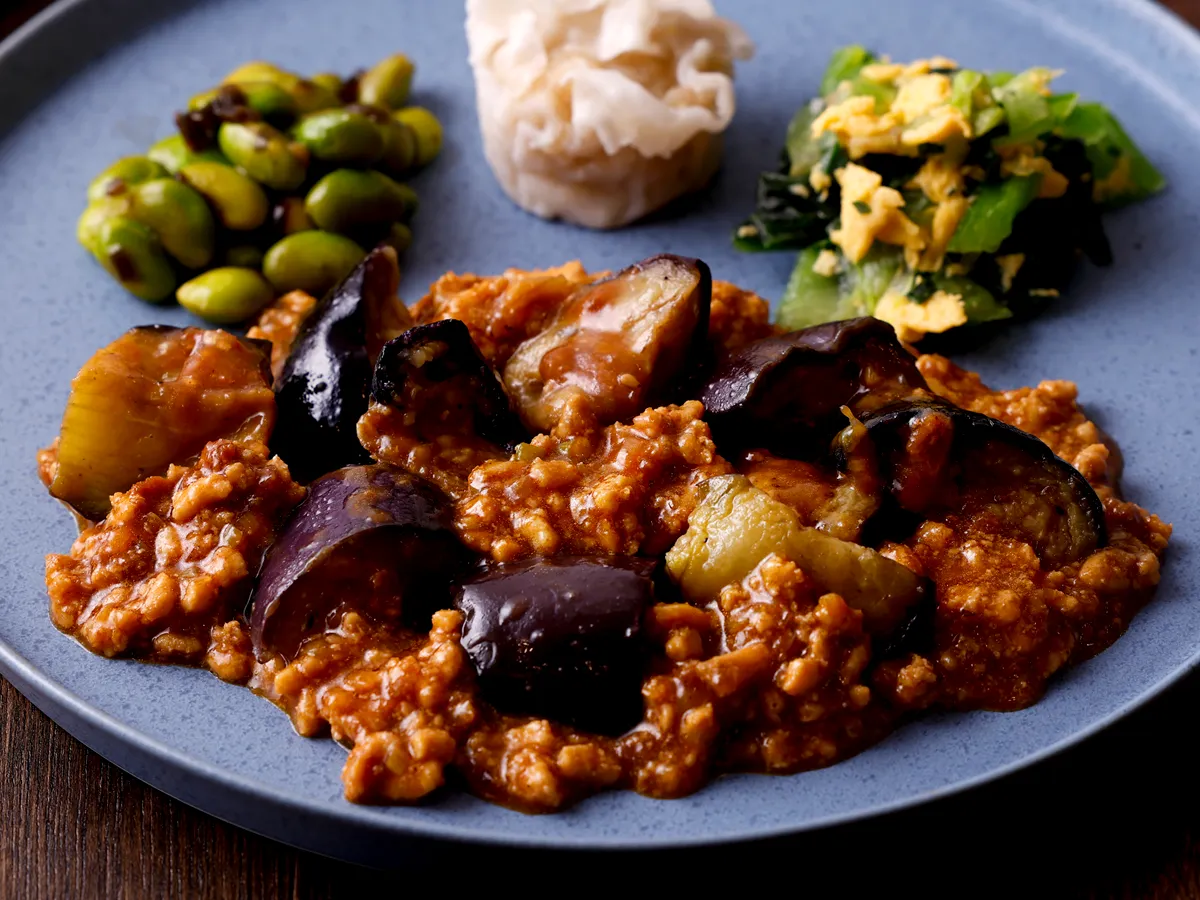 あえて粗めに挽いた豚ひき肉・茄子も増量し、コク深い麻婆ソースをたっぷりと絡めた人気メニュー。食べ応え満点!の麻婆茄子です。