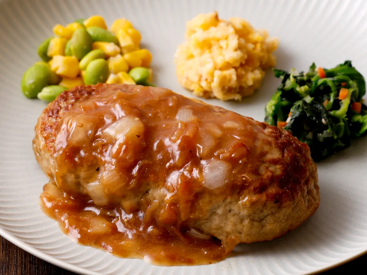 ふっくらジューシーに焼き上げたハンバーグに、玉ねぎの甘みと旨みを凝縮した特製ソースを絡まって美味。人気のオニオングリルハンバーグがボリュームアップ!