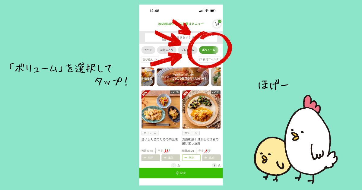 あとは、ボリュームメニューを選んでお好きなメニューを決定してくださいね!