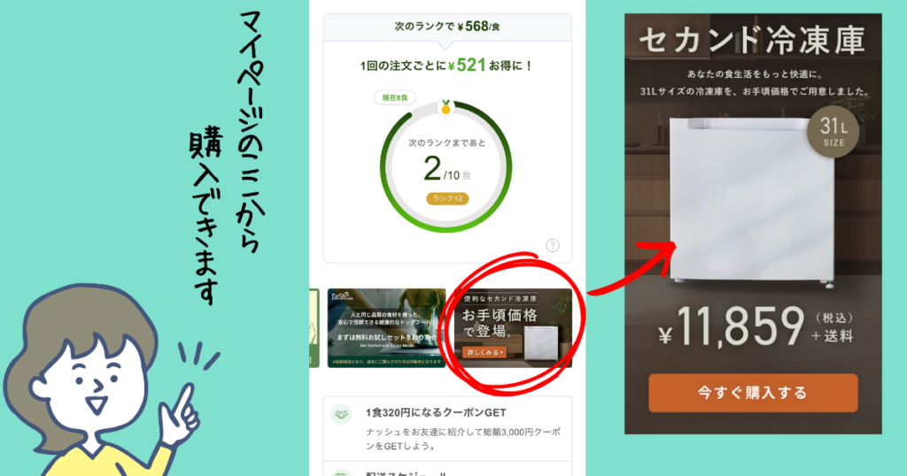 冷凍庫の空き不足でナッシュをあきらめなくてもいいように、ナッシュが市場価格よりも安くセカンド冷凍庫の販売もしています。